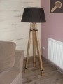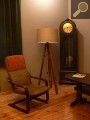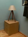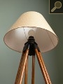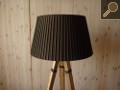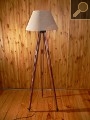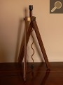 Lampa wykonana ze starego statywu fotograficznego. Elegancki i ciekawy wygląd dzieki zastosowaniu dwóch kolorów drewna. Co ciekawe, lampa została złożona bez użycia jakichkolwiek metalowych elementów.