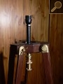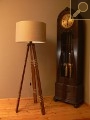 Szyk i ekstrawagancja w jednym. Wyjątkowa lampa podłogowa wykonana z bardzo starego statywu geodezyjnego. Masywna konstrukcja z ciemnego drewna oraz oryginalne stalowe i mosiężne elementy nadają jej niezwykłej elegancji. Zaprojektowana jako niepowtarzalna ozdoba do dużego, stylowego salonu, świetnie nadawałaby się do każdego nietuzinkowo urządzonego wnętrza.