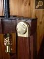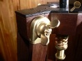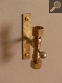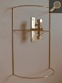 Komplet czterech kinkietów wykonany na zamówienie do bibliotczki, której właściciel traktuje światło jako element wystroju wnętrza równie ważny jak kolor ścian czy meble. Możliwość niezależnego włączania dwóch Ľródeł światła − użytkowego, oświetlającego ścianę ponad kinkietem i sufit oraz typowo dekoracyjnego, delikatnie podświetlającego abażur. Aby móc jeszcze precyzyjniej kontrolować światło umożliwiona jest regulacja kąta nachylenia opraw w kierunku od/do ściany. Cała konstrukcja wykonana została z mosiądzu.
