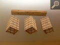 Lampa sufitowa wykonana na zmaówienie do pokoju, w którym króluje drewno − podłoga z sosnowych desek, tradycyjne sosnowe meble, drewninane drzwi oraz okna. Lampę charakteryzuje elegancja, a zarazem prostota, żadnych zbędnych zdobień i dodatków, drewniana konstrukcja oraz słomkowo bambusowe abażury dające przytulne, miękkie światło − to wszystko świetnie wkomponowuje się w klimat pomieszczenia.