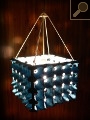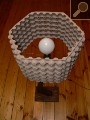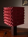 Lampa na prostej podstawie wykonanej z impregnowanego drewna, z niezwykle oryginalnym, ekologicznym abażurem, do zrobienia którego wykorzystano wytłoczki do przechowywania jaj. Daje bardzo ciekawe, ozdobne światło. Świetnie nadaje się do postawienia na niskim meblu czy wiszącej na ścianie półce.