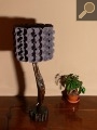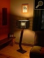 Prosta lampa podłogowa. Na pierwszy rzut oka wydaje się dość duża, wymagająca przestrzeni, ale została wykonana jako prezent dla przyjaciół do niewielkiego i dość ciasno urządzonego pokoiku, gdzie prezentuje się świetnie. Zacytuję słowa obecnej właścicielki − "Lampa jest cudna. Dokładnie taka, jaką sobie wymarzyłam".