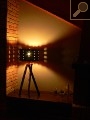 Statyw wykonano z opalanego drewna oraz oksydowanego metalu. Z całą pewnością to jedyny taki egzemplarz na świecie gdyż został stworzony zupełnie od podstaw według własnego pomysłu. Posiada możliwość regulacji wysokości oraz rozstawu nóg. To nietypowe Ľródło światła samo w sobie będzie wspaniałą ozdobą, jednocześnie wydobywając i podkreślając we wnętrzu to co najciekawsze. Może być zastosowany jako punktowe oświetlenie przestrzeni użytkowej lub jako dekoracyjne podświetlenie wybranych miejsc czy elementów w pomieszczeniu. ¦wietnie nada się do wnętrz ciekawych architektonicznie takich jak np poddasza ale także do pubów, restauracji lub galerii, których wnętrza zyskają dzieki niemu dodatkowego uroku i oryginalności.