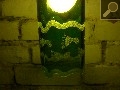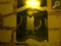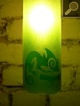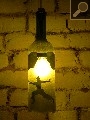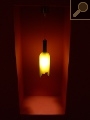 Ekologiczna lampa wykonana z butelki po winie. Podsufitka zrobiona została z odciętego od butelki denka. Lampa może stanowić niezwykle oryginalny element wystroju wnętrza w restauracji, pubie, ale także w ciekawie i odważnie urządzonym mieszkaniu. Grawerowany "koci motyw" może zostać zastąpiony dowolnym wzorem dobranym według życzenie klienta. Istnieje również możliwość wykonania świecznika z takim samym grawerem.