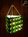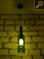 Ekologiczna lampa wisząca wykonana z butelki po winie. Podsufitka zrobiona została z odciętego od butelki denka. Lampa może stanowić niezwykle oryginalny element wystroju wnętrza w restauracji, pubie, ale także w ciekawie i odważnie urządzonym mieszkaniu. Grawerowany motyw kameleona na gałęzi może zostać zastąpiony dowolnym wzorem dobranym według życzenie klienta. Istnieje również możliwość wykonania świecznika z takim samym grawerem.