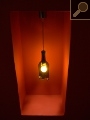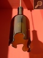 Ekologiczna lampa wisząca wykonana z butelki po winie z podsufitką ze stali nierdzewnej. Fantazyjna linia cięcia powoduje, że wszelkie dodatkowe zdobienia stają się absolutnie zbędne. Lampa może stanowić niezwykle oryginalny element wystroju wnętrza w restauracji, pubie, ale także w ciekawie i odważnie urządzonym mieszkaniu.
