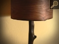 Podstawa tej lampy podobnie jak jej poprzedniczki wykonana została z dwóch surowych kawałków drewna brzozowego, opalonych, a następnie pokrytych specjalnym olejem. Abażur tym razem nie z papieru, a z jego pierwotnej formy czyli... z drewna. Na zewnątrz naturalny fornir z orzecha amerykańskiego, w środku drewniana ramka. Nieregularne krawędzie, również delikatnie opalone tak, aby abażur pasował do podstawy. Lampa prezentuje się bardzo elegancko, zachowując jednocześnie swój surowy, naturalny i niepowtarzalny charakter.