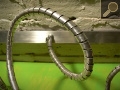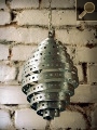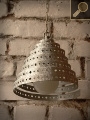 Tym razem to nie jest mały krok dla człowieka i wielki krok dla ludzkości. Pracownia Pana szczE wkroczyła w epokę żelaza robiąc od razu dwa takie kroki. Oto druga ze stalowych bliĽniaczek i choć nie jest to rodzeństwo jednojajowe, od razu widać pewne podobieństwa. Tak jak starsza siostra wygląda bardzo atrakcyjnie nawet, gdy jest wyłączona i tak samo jak ona swoją nadzwyczajną urodę eksponuje dopiero w blasku żarówki. Jej światło efektownie wydobywa się na zewnątrz klosza szczelnie wypełniając wszystkie jego otwory i odbijając się w nieregularnie wyszlifowanej powierzchni metalu. Perforowana stalowa taśma, łańcuch, tradycyjna metalowa oprawka z ceramicznym wkładem. Taki surowy charakter wymaga odpowiedniego wnętrza − beton, cegła, szkło, no i oczywiście wszelkiego rodzaju inna stal.