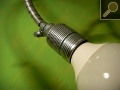 Niezwykła lampa na biurko, stolik, komodę, półkę wiszącą na ścianie... Praktycznie nadająca się wszędzie tam, gdzie tylko się zmieści. Daje bardzo ciekawe i dekoracyjne światło. Podstawa wykonana z olejowanego drewna, z możliwością regulacji pochyłu ramienia, na którym zawieszony jest aluminiowy abażur. Całości dopełniają czarno−białe komponenty elektryczne (kabel, oprawka, włącznik, wtyczka).
