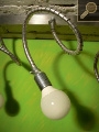 Tym razem potrójna lampa na aluminiowej listwie mocowanej do sufitu. Tradycyjne metalowe oprawki z ceramicznym wkładem zainstalowane są na spiralnych aluminiowych ramionach. Poza tym bark kloszy, abażurów i tym podobnych zbędnych dodatków :) Estetyczne żarówki doskonale dopełniają całości. Beton, cegła, szkło, no i oczywiście wszelkiego rodzaju inna stal − to towarzystwo, w którym ta lampa świetnie się odnajdzie.