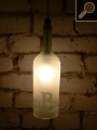 Ekologiczna lampa wisząca wykonana z butelki po winie. Podsufitka zrobiona została z odciętego od butelki denka. Lampa może stanowić niezwykle oryginalny element wystroju wnętrza w restauracji, pubie, ale także w ciekawie i odważnie urządzonym mieszkaniu. Grawerowany motyw śladów stóp może zostać zastąpiony dowolnym wzorem dobranym według życzenie klienta. Istnieje również możliwość wykonania świecznika z takim samym grawerem.