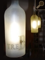 Wykonany na zamówienie komplet lamp z butelek. Butelki zostały zmatowione, a na każdej z nich została wygrawerowana nazwa wina − TREBIANO, CHIANTI oraz MARSALA. W każdej nazwie jedna litera jest wieksza, a trzy lietery napisane większą czcionką tworzą napis BAR. Każda z butelek posiada podsufitkę wykonaną z odciętego od butelki dna.