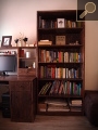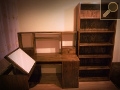 Drugi element kompletu stanowi regał − biblioteczka. Dwie stałe półki oraz trzy z możliwością dopasowania wysokości. Tylna ścianka wykonana ze sklejki.