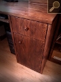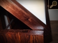 Komplet mebli wykonanych drewna sosnowego. Całość bejcowana na kolor wenge, a następnie polakierowana.