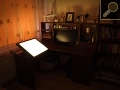 Główny element zestawu to stanowisko pracy w postaci biurka z nadstawką oraz dodatkowym podświetlanym blatem. Biurko posiada półkę na komputer, szafkę, dużą szufladę oraz wysuwaną półkę na klawiaturę. Nadstawka z miejscem na monitor, półeczkami i dwiema małymi szufladkami. Dodatkowy blat posiada podświetlenie diodowe, a także regulowany aż w sześciu położeniach kąt nachylenia. Przykryty jest szkłem, pod którym znajduję się warstwa pleksi odpowiednio rozpraszającego światło.