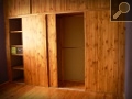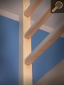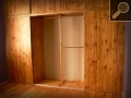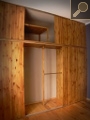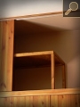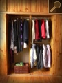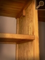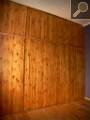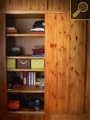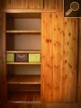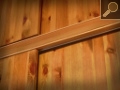 Szafa wnękowa czyli niezwykle praktyczny mebel, który pomieści prawie wszystko, a zarazem estetyczny element wystroju wnętrza bardzo ocieplający jego klimat. Drzwi przesuwne, podłoga części górnej oraz rama zostały wykonane z drewna, półki i ścianki w części dolnej ze sklejki. Dolny środkowy segment przeznaczony na wieszaki − dwa poziomy na rzeczy krótkie, jeden na rzeczy długie. W bocznych segmentach na dole półki, których układ można w łatwy sposób dostosować do własnych potrzeb. Część górna − pawlacz − nie został podzielony ściankami, dzięki czemu pomieści naprawdę duże przedmioty.