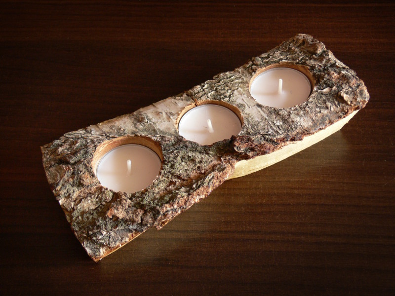 Świecznik potrójny, wykonany z niewielkiego fragmentu gałęzi drzewa brzozowego. Najbardziej naturalny z dostępnych w ofercie świeczników − został jedynie pokryty olejem od spodu oraz po bokach w celu zabezpieczenia przed wilgocią. Zaproś naturę do swojego domu :)