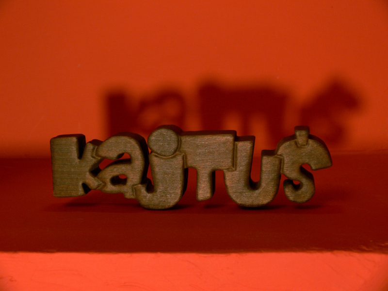 Ręcznie wykonany napis z litego drewna − imię Twojej pociechy − Kajtuś. Estetyczna i ekologiczna dekoracja nadająca się zarówno do powieszenia na drzwiach lub ścianie, jak i do postawienia na półce albo biurku. Sympatyczna, dziecinna czcionka świetnie wkomponuje się w klimat pokoju Twojego malucha. Napis został wykonany z jednego kawałka drewna bukowego i wykończony poprzez opalenie. Na życzenie klienta może zostać pokryty specjalnym olejem lub lakierem.
