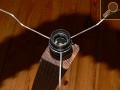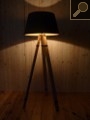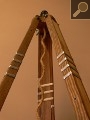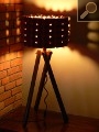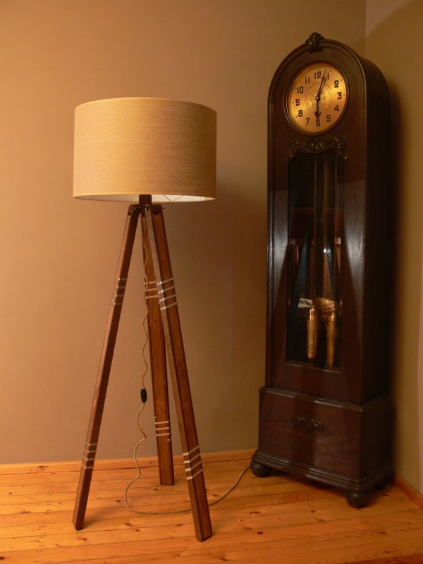 Lampa wykonana ze starego statywu fotograficznego. Elegancki i ciekawy wygląd dzieki zastosowaniu dwóch kolorów drewna. Co ciekawe, lampa została złożona bez użycia jakichkolwiek metalowych elementów.