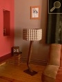 Prosta lampa podłogowa. Na pierwszy rzut oka wydaje się dość duża, wymagająca przestrzeni, ale została wykonana jako prezent dla przyjaciół do niewielkiego i dość ciasno urządzonego pokoiku, gdzie prezentuje się świetnie. Zacytuję słowa obecnej właścicielki − "Lampa jest cudna. Dokładnie taka, jaką sobie wymarzyłam".