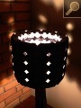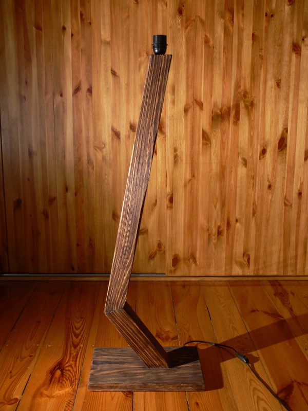 Statyw wykonano z opalanego drewna oraz oksydowanego metalu. Z całą pewnością to jedyny taki egzemplarz na świecie gdyż został stworzony zupełnie od podstaw według własnego pomysłu. Posiada możliwość regulacji wysokości oraz rozstawu nóg. To nietypowe Ľródło światła samo w sobie będzie wspaniałą ozdobą, jednocześnie wydobywając i podkreślając we wnętrzu to co najciekawsze. Może być zastosowany jako punktowe oświetlenie przestrzeni użytkowej lub jako dekoracyjne podświetlenie wybranych miejsc czy elementów w pomieszczeniu. ¦wietnie nada się do wnętrz ciekawych architektonicznie takich jak np poddasza ale także do pubów, restauracji lub galerii, których wnętrza zyskają dzieki niemu dodatkowego uroku i oryginalności.