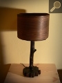 Projekt inspirowany lampą IV. Coś dla miłośników drewna czyli kolejna konstrukcja wykonana bez użycia metalu − oczywiście poza przewodem i elementami oprawki :). Prosta, spójna forma, podstawa w dwóch odcieniach orzecha oraz niezwykle elegancki abażur w kolorze palisandru.
