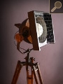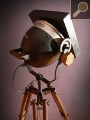 Tym razem zupełnie inna propozycja. Odrestaurowany stary reflektor sceniczny przerobiony na lampę. Reflektor wyposażony został w stylowy włącznik, a plastikowe elementy zastąpiono drewnianymi komponującymi się z podstawą. Posiada metalową kratkę osłaniającą żarówkę oraz ręce użytkownika. Można go obracać oraz zmieniać jego nachylenie. Itnieje także możliwość wkładania kolorowych filtrów czy dyfuzora zmiękczającego światło (na dodatkowe zamówienie).