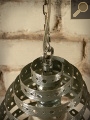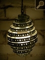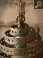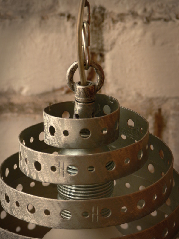 Tym razem to nie jest mały krok dla człowieka i wielki krok dla ludzkości. Pracownia Pana szczE wkroczyła w epokę żelaza robiąc od razu dwa takie kroki. Oto druga ze stalowych bliĽniaczek i choć nie jest to rodzeństwo jednojajowe, od razu widać pewne podobieństwa. Tak jak starsza siostra wygląda bardzo atrakcyjnie nawet, gdy jest wyłączona i tak samo jak ona swoją nadzwyczajną urodę eksponuje dopiero w blasku żarówki. Jej światło efektownie wydobywa się na zewnątrz klosza szczelnie wypełniając wszystkie jego otwory i odbijając się w nieregularnie wyszlifowanej powierzchni metalu. Perforowana stalowa taśma, łańcuch, tradycyjna metalowa oprawka z ceramicznym wkładem. Taki surowy charakter wymaga odpowiedniego wnętrza − beton, cegła, szkło, no i oczywiście wszelkiego rodzaju inna stal.