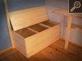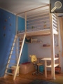Komplet do pokoju dziecięcego składający się z antresoli, biurka z półką, skrzyni na zabawki oraz półek ściennych. Całośc wykonana z drewna sosnowego. Duża, wygodna i bezpieczna przestrzeń do spania przystosowana pod materac 180 x 90 cm (a więc w razie potrzeby mogąca pomieścić także jedno z rodziców). Bezpieczne i szerokie schody (drabina), po których również swobodnie może stąpać osoba dorosła. Praktyczne biurko "narożne" zapewniające mnóstwo miejsca do nauki i zabawy z dużą półką pod spodem. Dwie półki ścienne na książki i nie tylko. Zamykana skrzynia na zabawki i inne skarby naszego dziecka, która może także posłużyć jako wygodne siedzisko, a mniejszemu dziecku pozwoli dosięgnąć na wyższą półkę. Wspaniałe i niezwykle praktyczne miejsce do spania, nauki i zabawy, zaprojektowane tak, aby zabierać jak najmniej miejsca z pokoju dziecka.