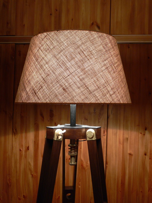 Lampa podłogowa wykonana z bardzo starego statywu geodezyjnego o nietypowej i niezwykle oryginalnej konstrukcji. Przy dość dużych gabarytach zachowuje lekkość formy, dzięki czemu nadaje się zarówno do wszechstronnych wnętrz lokalu użytkowego jak i znacznie mniejszych pomieszczeń w mieszkaniu. Dopasowanie jej do konkretnej przestrzeni dodatkowo ułatwia regulowany rozstaw nóg.